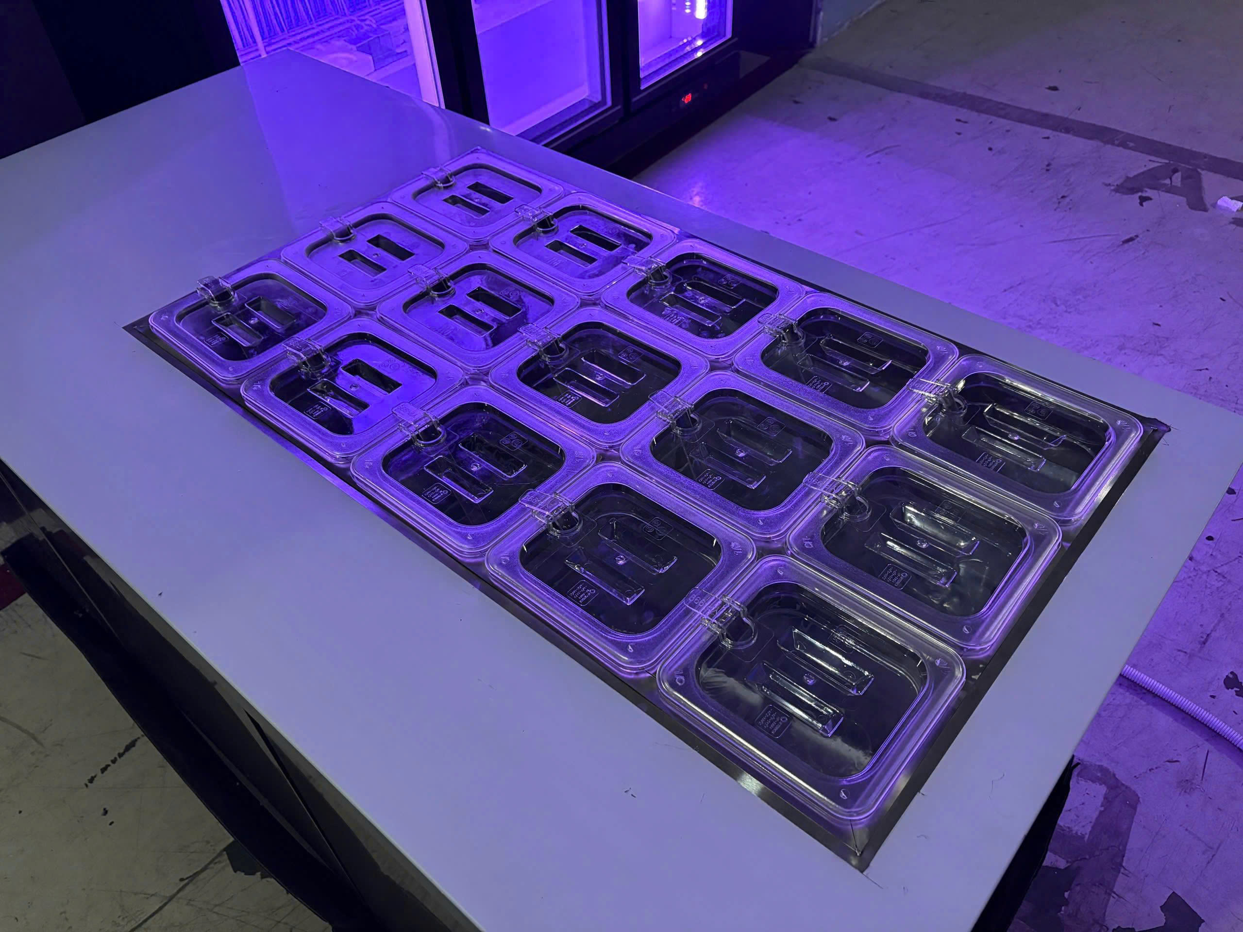 – Phía trên bố trí khay nhựa mica đựng nguyên liệu giúp đầu bếp dễ dàng tiếp cận.