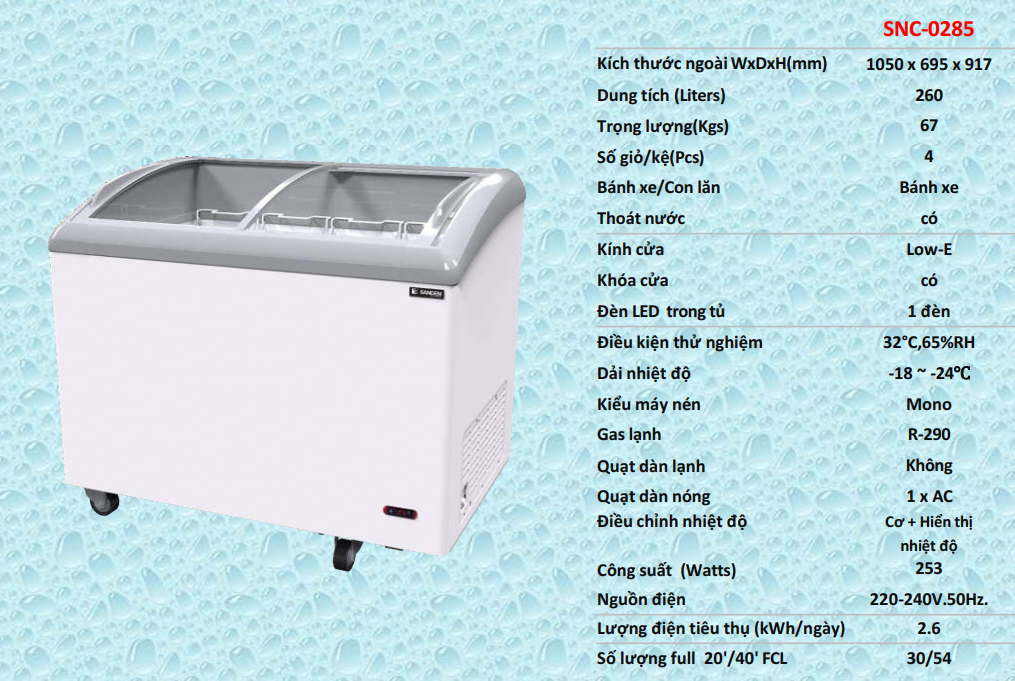 Đánh giá TỦ ĐÔNG CỬA LÙA MẶT KÍNH CONG SANDEN INTERCOOL SNC- 0285 (260L)